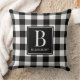Farmhouse Check Black & White Plaid Monogrammed Cushion