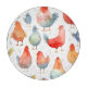 Cute and happy farmhouse chickens, cosy, colourful and rustic style drawing.