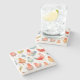 The coasters are gorgeous, a quality feel and heavy weight. They look like a precious archeological find. A rustic stone juxtaposed with a modern floral black and white print. I like the way the print goes slightly imperfect on the cut stone edges giving them a kind-of natural beauty.