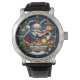 Step into a nostalgic winter wonderland with this charming farmhouse-style Christmas watch. The design features a cheerful Santa Claus, bringing warmth and joy to a cosy, snow-covered cabin scene with a welcoming chimney. Adorned with rustic pinecones, vibrant red berries, and a glowing lantern, this decorative timepiece embodies a timeless, traditional holiday spirit. Its vintage style and festive illumination make it a perfect gift and a heartwarming addition to your home decor, bringing the joyful essence of a rural Christmas evening to your seasonal display. Celebrate the holidays with this unique blend of classic cheer and farmhouse charm.
