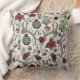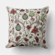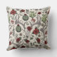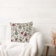 This elegant farmhouse Christmas pillow features a hand-drawn pattern of reindeer skulls adorned in red and cream roses with festive poinsettia flowers, cacti, holly and red winter berries, all against an elegant cream background. Ideal for the holiday season or country Christmas wedding.