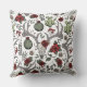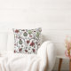 This elegant farmhouse Christmas pillow features a hand-drawn pattern of reindeer skulls adorned in red and cream roses with festive poinsettia flowers, cacti, holly and red winter berries, all against an elegant white background. Ideal for the holiday season or country Christmas wedding.