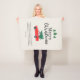 This fleece blanket features a modern farmhouse design accented with a vintage watercolor graphic of a red car hauling a fresh cut Christmas tree on top. Handwritten style calligraphy reads "Merry Christmas" with custom text for your family name.