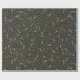 Farmhouse country dark pine tree, red and white foliage, wreath, leaves, rustic pattern cute holiday gift wrapping paper.