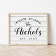Custom farmhouse wall art with your family name monogram and established date on a faux shiplap wood background. Customize It with your own text and images to create a unique one of a kind sign.