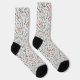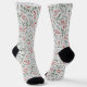 Farmhouse country pale grey, red and dark green foliage, wreath, leaves, rustic pattern cute holiday socks.