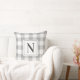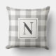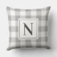 Farmhouse Grey Gingham Check Plaid Monogram Cushion