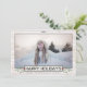 Show your rustic farmhouse style with this cosy holiday greeting. The front is designed with a place to insert one horizontal photograph. Your photo is surrounded by a modern black border that has the words 'Happy Holidays' designed into the frame as well as sage green leafy sprigs accented by red berries. The background is an image of rustic whitewashed shiplap. Customise the front with the date and your own names, just use the easy, provided templates. The reverse side is printed in a cream and black buffalo check pattern.