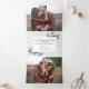 Add a total of six photos to this rustic elegant holiday photo card design in a unique trifold layout adorned with a farmhouse inspired white wood plank background and sprigs of green watercolor leaves and red holly berries. Personalise the inside with a custom pre-printed message or "year in review" update letter.