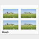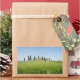 Rectangular photo sticker with a farmhouse with cypress trees and waving wheat grains in spring in the Val d’Orcia valley in Tuscany, Italy.