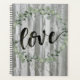Farmhouse Inspiration I by Jennifer Paxton Parker. Features "Love" in script with a beautiful green wreath and distressed wood panels.