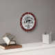 Farmhouse Name Rustic Buffalo Plaid Barn Wood Cow Round Clock