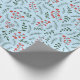 Farmhouse country pastel light blue, red and dark green foliage, wreath, leaves, rustic pattern cute holiday gift wrapping paper.