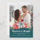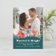 From the Farmhouse Poinsettia Christmas & Holiday Collection: Rustic Farmhouse Poinsettia Married & Bright Newlyweds Photo Holiday Christmas Card, with Beautiful Bouncy Calligraphy Script Font "Have Yourself A Merry Little Christmas" Holiday Greeting, and Personalised Family Name. Easily Add your family or New Baby photograph and text to this gorgeous Christmas Card Template. In 4 different colorway options, this option features a simple Dark Teal Green background colour, and pretty watercolor poinsettia and greenery background on farmhouse white ship-lap wood! A classic and rustic combination that will wow all your family and friends who receive their card this year!