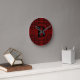 FARMHOUSE RED GINGHAM CHECKERED PLAID ROUND CLOCK