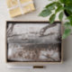 Rustic farmhouse or barn background with vintage newspaper overlay, and horse stamp.