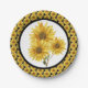 Create a stunning table setting with this golden yellow sunflower paper plate. This plate features a watercolor illustrated sunflower bouquet on a creamy white centre then the border of this plate features a sunflower pattern with a black background. The design of this plate is perfect for a variety of occasions. View coordinating kitchen and dining products at my Country Style Cards and Gifts collection.