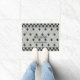 Beautiful marble floors are expensive to install, but this sweet mat will give you the impact without the cost! Vintage hexagon marble tile pattern in grey and charcoal black with black and white chequerboard borders top and bottom. Change out the message or family name or DELETE ALTOGETHER if you do not want text. Artwork by Audrey Jeanne Roberts, copyright.