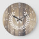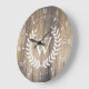 Farmhouse White Numerals Monogram Laurels Wood Large Clock