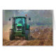 Preparing for the next crop. The tractor ploughs (ploughs) the field and wild birds look for food in the freshly turned soil. Watercolor England.