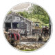 An unusual fun abstract design of the farm with barns, cows, horse and equipment.