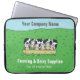 Dairy Farming Illustration shows cattle feeding a a cattle-trough. Dairy Farmer laptop bag cover. Farming & Dairy Services on a personalised computer sleeve with cartoon cows
