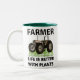 Farming Tractor Field Farmer Two-Tone Coffee Mug designed by Nisha Prabhu. Featuring original digital design illustration of tractor on wheat field with typography ''Farmer. Life Is Better With Plants.'' Sip in style with this Farming Tractor Field Farmer Two-Tone Coffee Mug! Embrace the rural charm as you enjoy your favourite brew in this delightful mug featuring a picturesque design of a tractor in the field. Whether you're a farmer at heart or simply appreciate the beauty of farm life, this mug is sure to brighten your day. With its two-tone design and sturdy ceramic construction, this mug is both stylish and functional. Perfect for your morning coffee or tea, this mug is a wonderful addition to your kitchen collection. Order now and elevate your coffee breaks with a touch of agricultural flair!