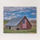Farms | Rustic Red Barn With American Flag Jigsaw Puzzle