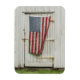 This amazing Getty Images photo features an American Flag hanging on a worn white barn door.