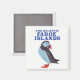 Faroe Islands Puffin bird travel poster in a vintage style.