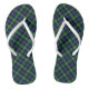Flip flops with the Clan Farquharson and Fulkerson tartan, a traditional Scottish plaid pattern in bright royal blue and green, with black, red and yellow accents.