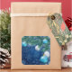 A really pretty white Christmas square sticker featuring white snowflakes falling from a magical blue sky. Green Christmas pine tree branches and white and blue Christmas balls give it a festive look. Perfect Christmas gift for your loved ones