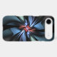 iPhone case with "Fascination", copyright © 2010, Susan Wallace. A fanciful abstract design with feathery shapes in light blue, crimson red, and sage green.