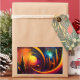 Bright psychedelic picture, the city of the Sun in colourful colours and geometric shapes.