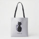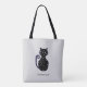 Fashion cosmos cat tote bag. A black cat containing light blue stars on silver background. Text can be personalised.
