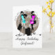 Funky, trendy stick figure silhouettes of shopping divas with attitude wearing modern retro clothing in turquoise and pink, surrounded by bags of shopping, a beige circle and floral swirls. CUSTOMIZE IT - Change the wording to suit any birthday, wedding, family or friendship occasion. BACKGROUND COLOR - Use the "customise it" button to change it to any colour of your choice.