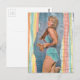 Fashion model Woman in 1957 on the beach collage Postcard