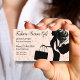 Shopping concierge and fashion adviser business cards with a stylish and trendy polka dot pattern and fashionable model holding shopping bags in the background. Designed for an upscale personal concierge that assists busy executives with their shopping and daily life schedule.
