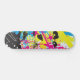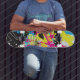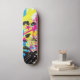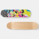 Retro style 80s graphic with simple shapes with bold colors onto skateboards.