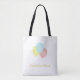 Fashion three balloons Tote Bag. The colourful balloons in yellow, turquoise and pink has a text message: Celebrate Good Moments. Text can be personalised.