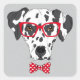 This design features a hand drawn portrait of Dalmatian dressed in red glasses and heart design bow tie.