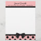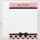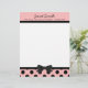 Pretty letterhead stationery, with graphics of a pink, with black polka dot footer, with a black border and black bow, in the middle. A black band, at the top, acts as a border for the pink header part of the page, with custom black text ready to personalise. Pretty retro yet stylish look.