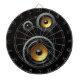 This fun retro speaker design features woofer, tweeter and bass speakers on a wood grain background, taking you back to the look of music sound systems in the 80s when we all had cabinet speakers.