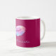 A chic design, this "Fashionista" coffee mug features a fuchsia background with pink and blue cotton candy colour lip prints. Underneath the lip print is "Fashionista" written in sassy blue font. Place your order today!