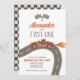 Fast One Race Car 1st Birthday Invitation with red retro race car.