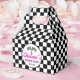 Thank your fans, family and friends with this Fast ONE Custom Birthday favour boxes! designed with a bold chequered black and white background and a centre label for your custom birthday name in pink and date. Perfect for sweat treats and favours