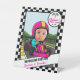 Fuel up the fun with this Fast ONE Refueling Station - Drinks & Snacks Poster Sign—the perfect touch for your birthday drink or snack table! Featuring a race car driver illustration with your child’s face, a racetrack background, and a bold black-and-white chequered frame, this sign is a party showstopper.