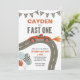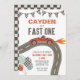 Fast One Race Car 1st Birthday Invitation with red retro race car.