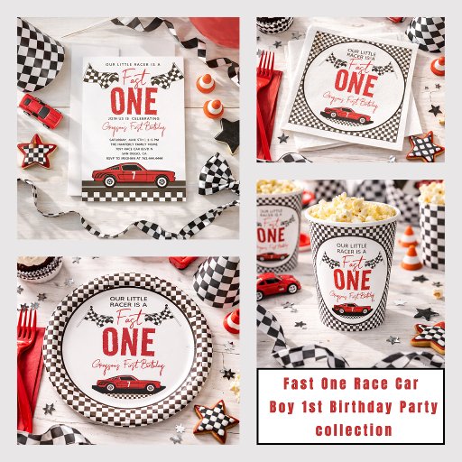 Fast One Race Car Boy 1st Birthday Party Invitation