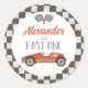 Fast One Race Car 1st Birthday sticker with red vintage race car.